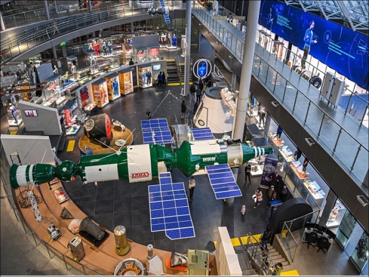 - Экспозиции с подлинными космическими аппаратами, ракетными двигателями и скафандрами